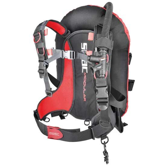 El equipo básico de Seac Modular incluye: arnés con correas de hombro desmontables y respaldo suave con núcleo de acero extraíble, saco equilibrador en formato Donut de 13,5 litros de capacidad, 2 bolsillos para lastre de liberación rápida, anillo en D y hebilla de aluminio anodizado ventral