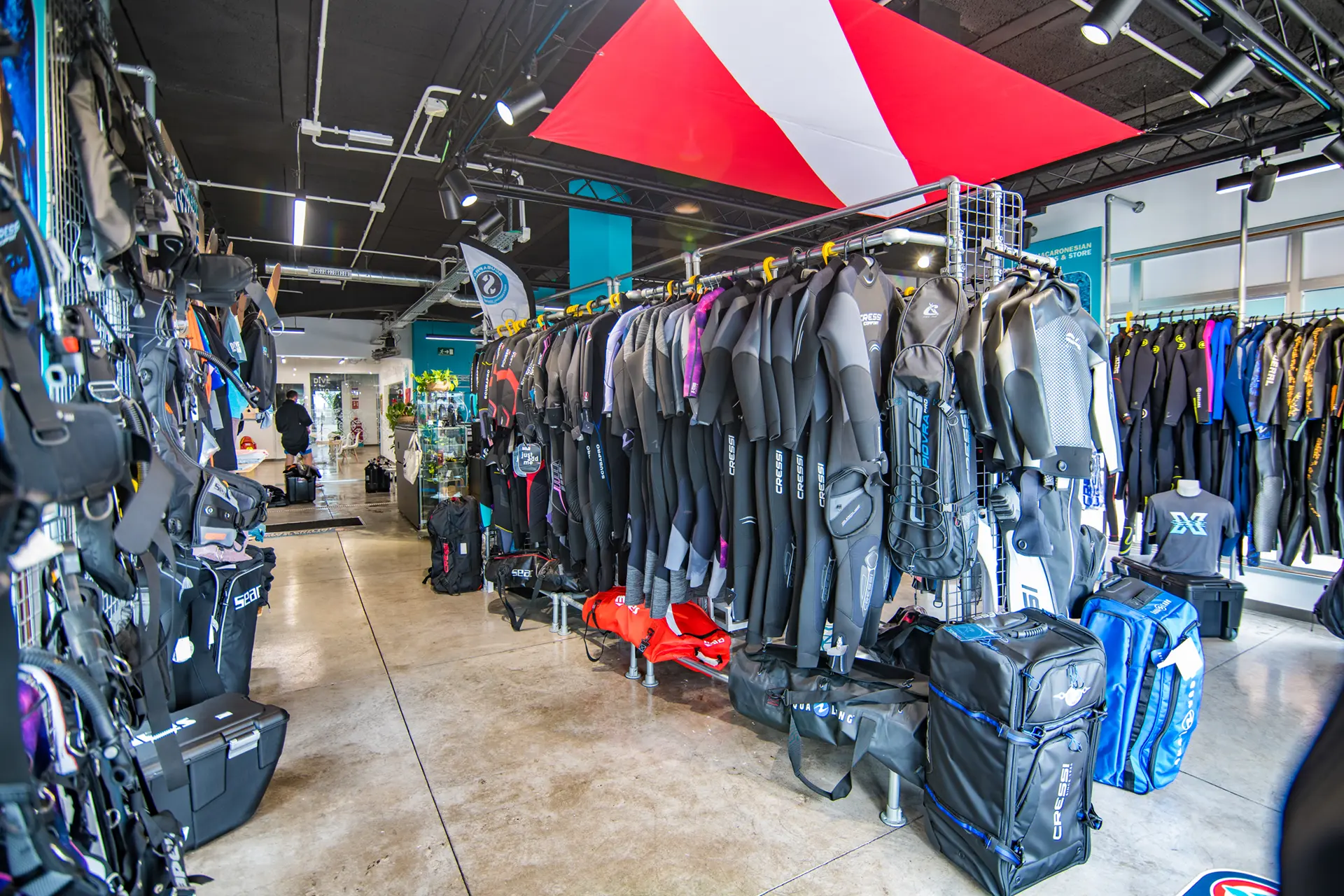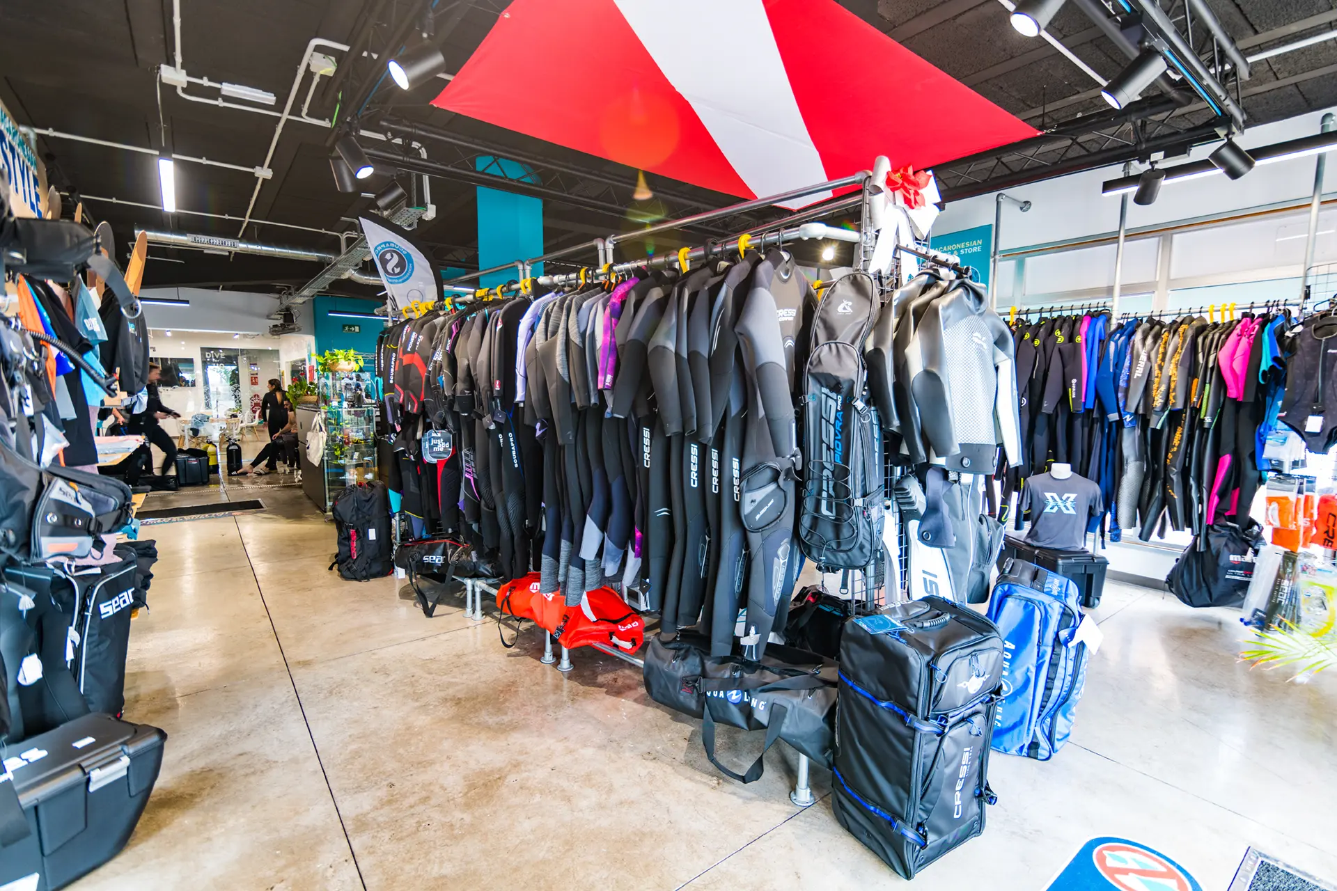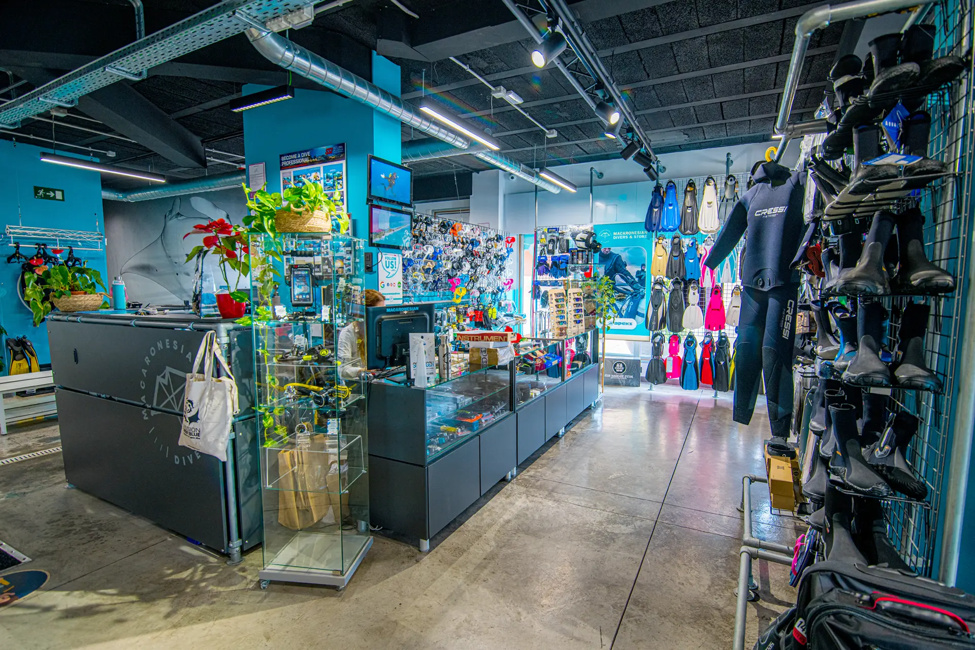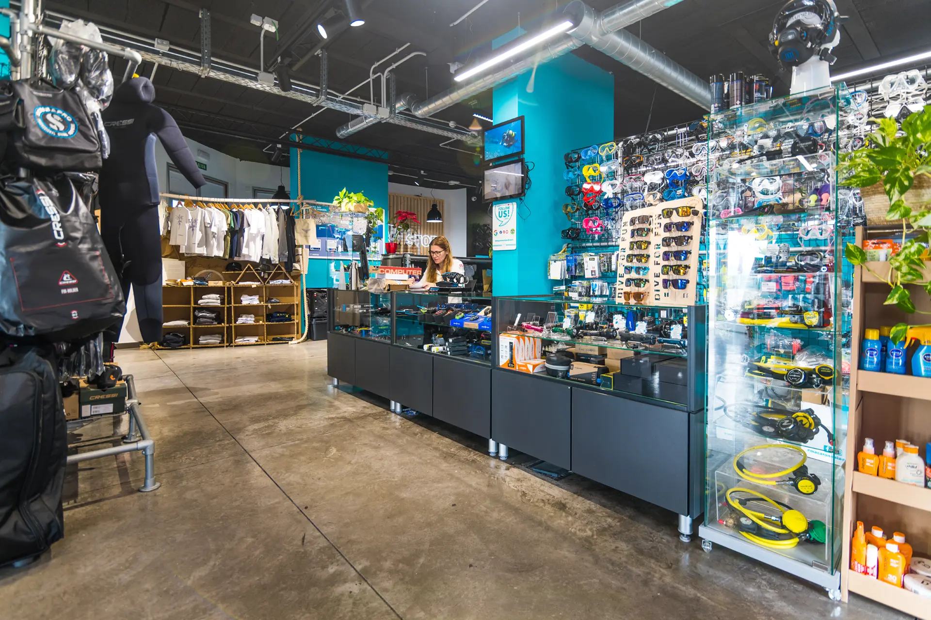 Nuestra amplia tienda en Radazul, Tenerife, cuenta con una gran exposición de productos de buceo de las mejores marcas del mercado. Aquí podrás explorar cómodamente una completa selección de equipos, accesorios y novedades, todo organizado para que encuentres fácilmente lo que necesitas. Ven a descubrir la calidad y variedad que ofrecemos, y equípate con la garantía de trabajar con primeras marcas del sector.